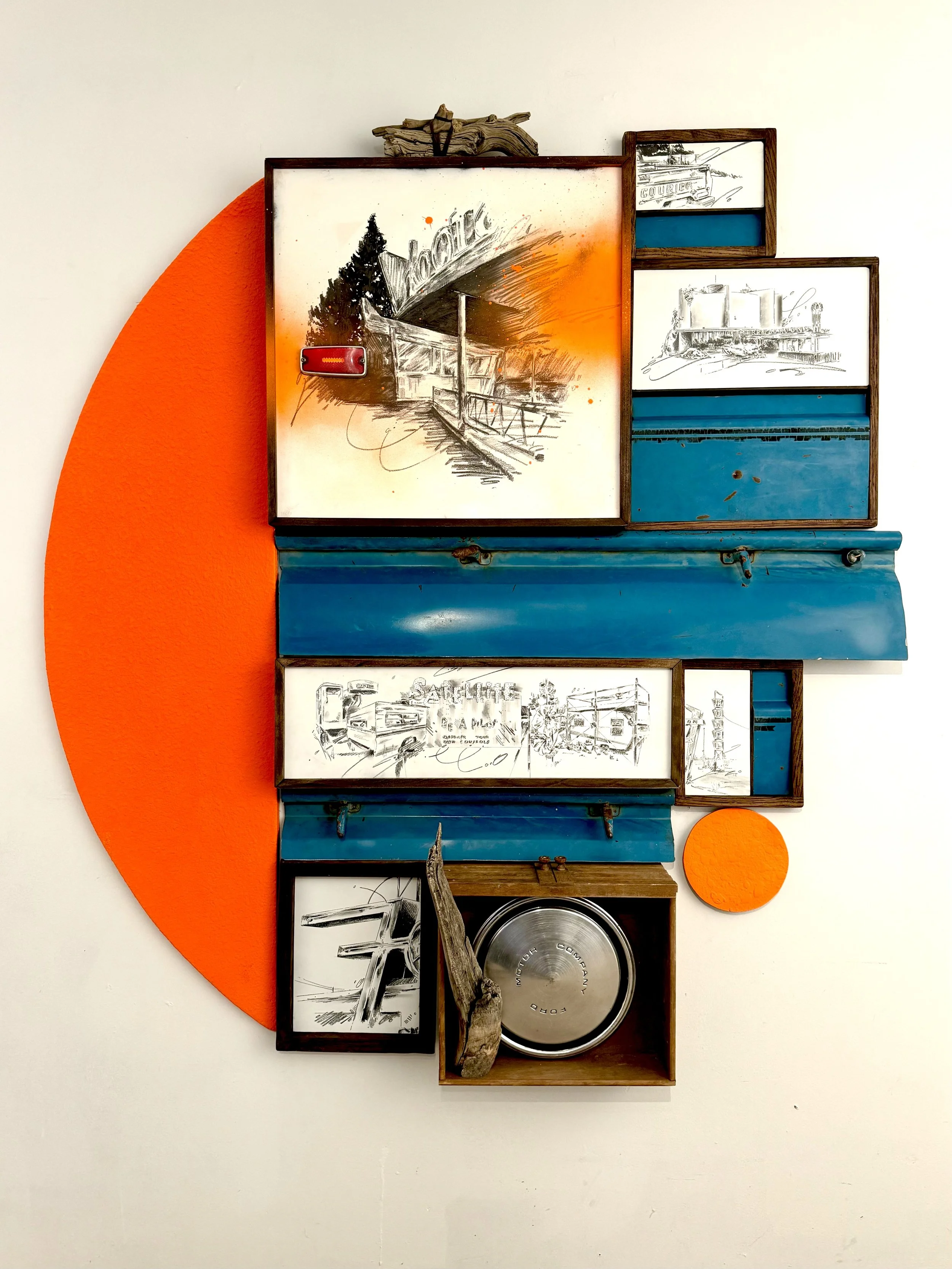 “Long Distance Alchemy” features artists Corey Hagberg (Crush Entity), Jack Cackovic (Nice One) and Alex Krueger. All 3 artists have a strong connection to Chicago, having spent much of their artistic beginnings in and around the city. Now spanning from New York City to Denver, creative expression is the alchemy that ties them together. The city’s grittiness, politics, industry, people and culture is built into the framework of their work. The multitude of mediums used include assemblage, painting, drawing, sculpture and glass. Each artist is meticulous in their craft and messaging while their backgrounds in creating murals aid in the overall visual impact of the exhibition.